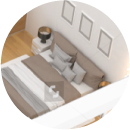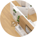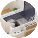 Cachée sous un plan de travail de cuisine, un dressing, un plancher, une cloison, ou un équipement sanitaire (baignoire, paroi de douche, miroir…), notre technologie SYLPH® crée une ambiance acoustique très répartie qui enveloppe la zone concernée.
