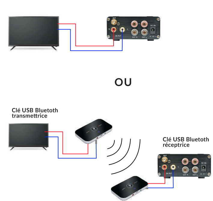L’amplificateur ATM-BT60Y peut être connecté à une télévision en analogique via l’entrée audio RCA ou via le bluetooth.