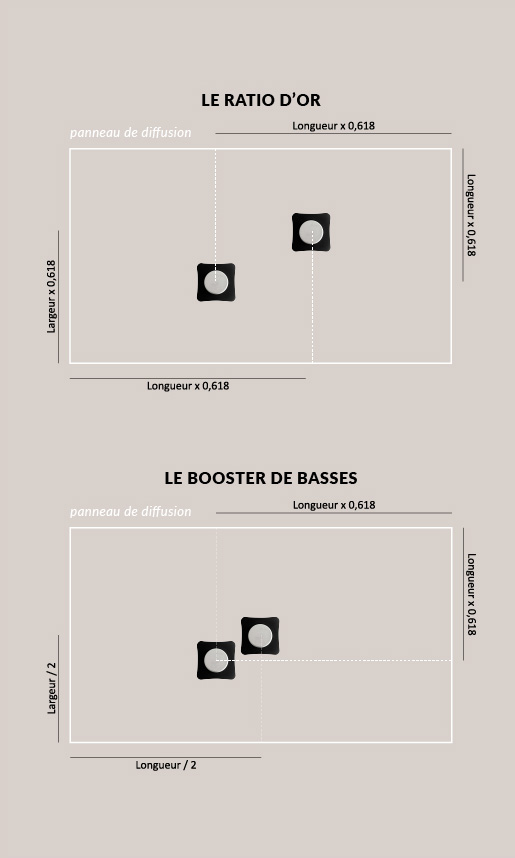 La puissance délivrée pour chacun des haut-parleurs sera légèrement inférieure. Ce type d’installation peut être intéressant dans le cas d’une grande surface (40 à 70m2), afin d’équilibrer les sources sonores.