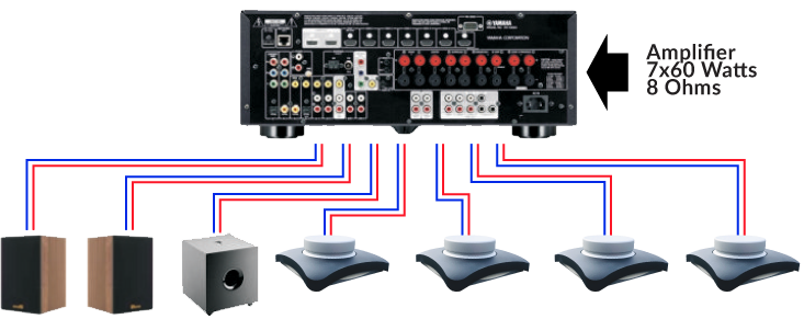 Vous pouvez installer les haut-parleur SYLPH sur un amplificateur multi-sorties audio, habituellement utilisé pour brancher plusieurs haut-parleurs (5.1, 7.1, etc…). Il est alors possible de mixer des enceintes classiques avec des haut-parleurs SYLPH.